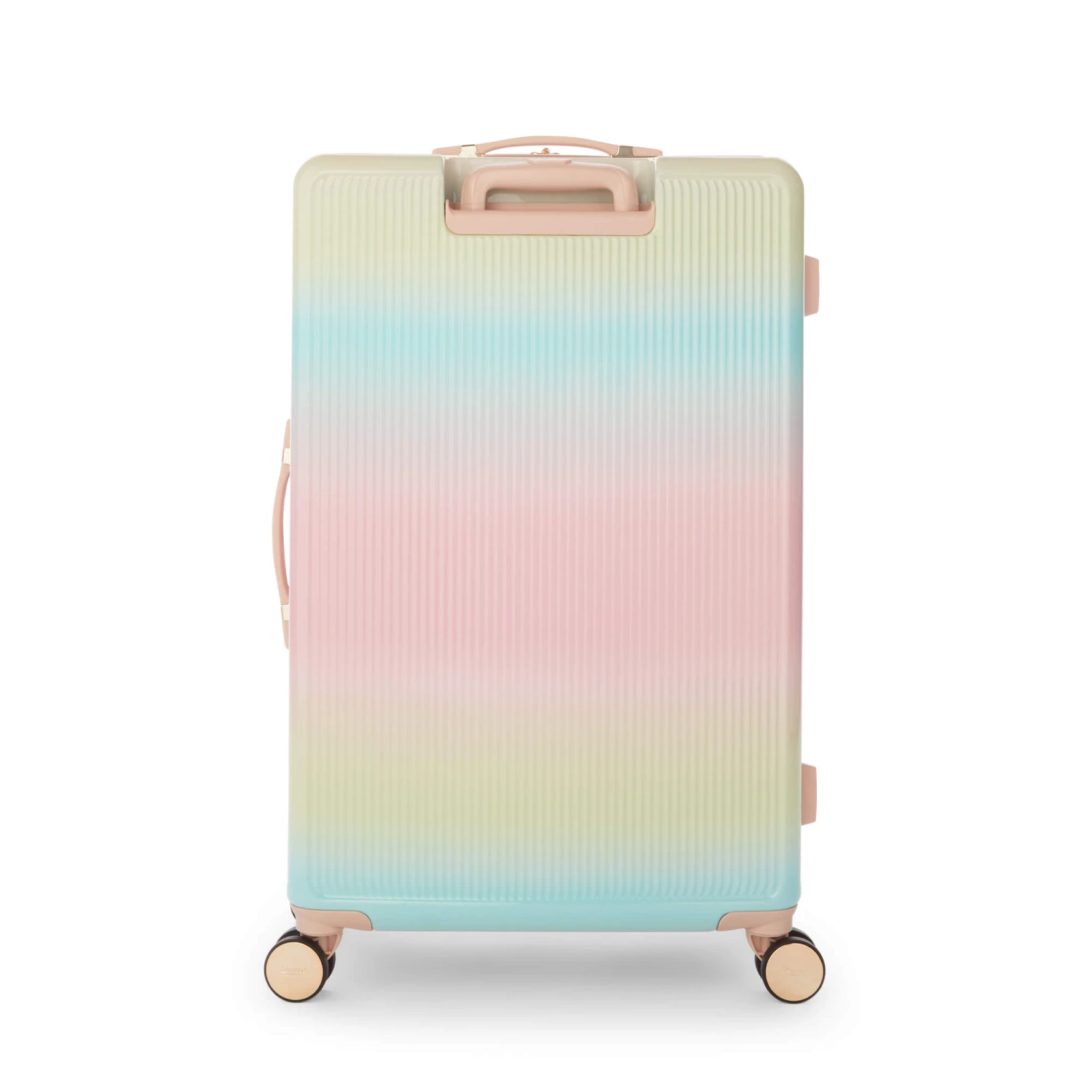The Olive collection is made from a superlight and strong material which is impact resistant. Four smooth double wheels with 360° rotation and Dune London logo hubcaps. Internal pockets and straps for organised packing. A lightweight trolley system with signature gold finish. TSA Padlock included. A 2-year manufacturer’s warranty