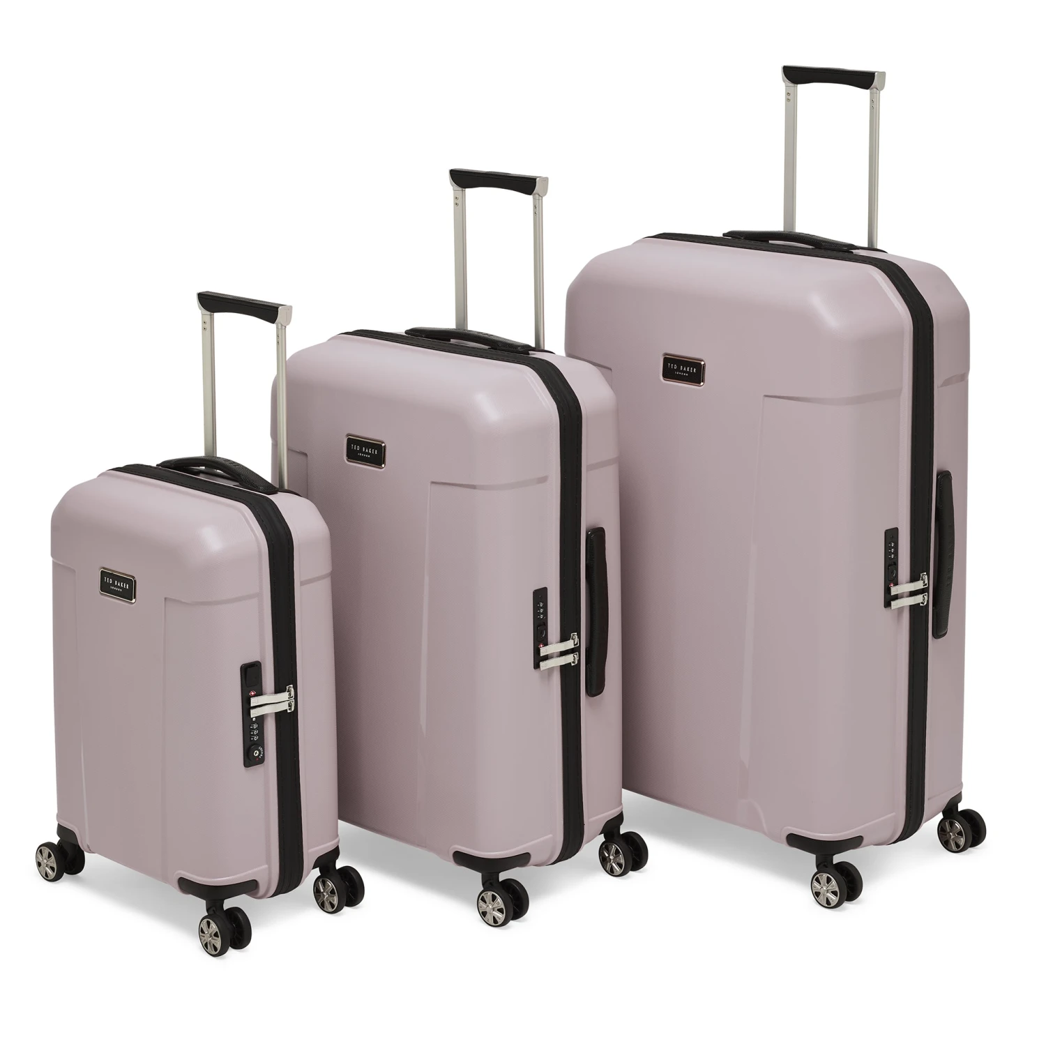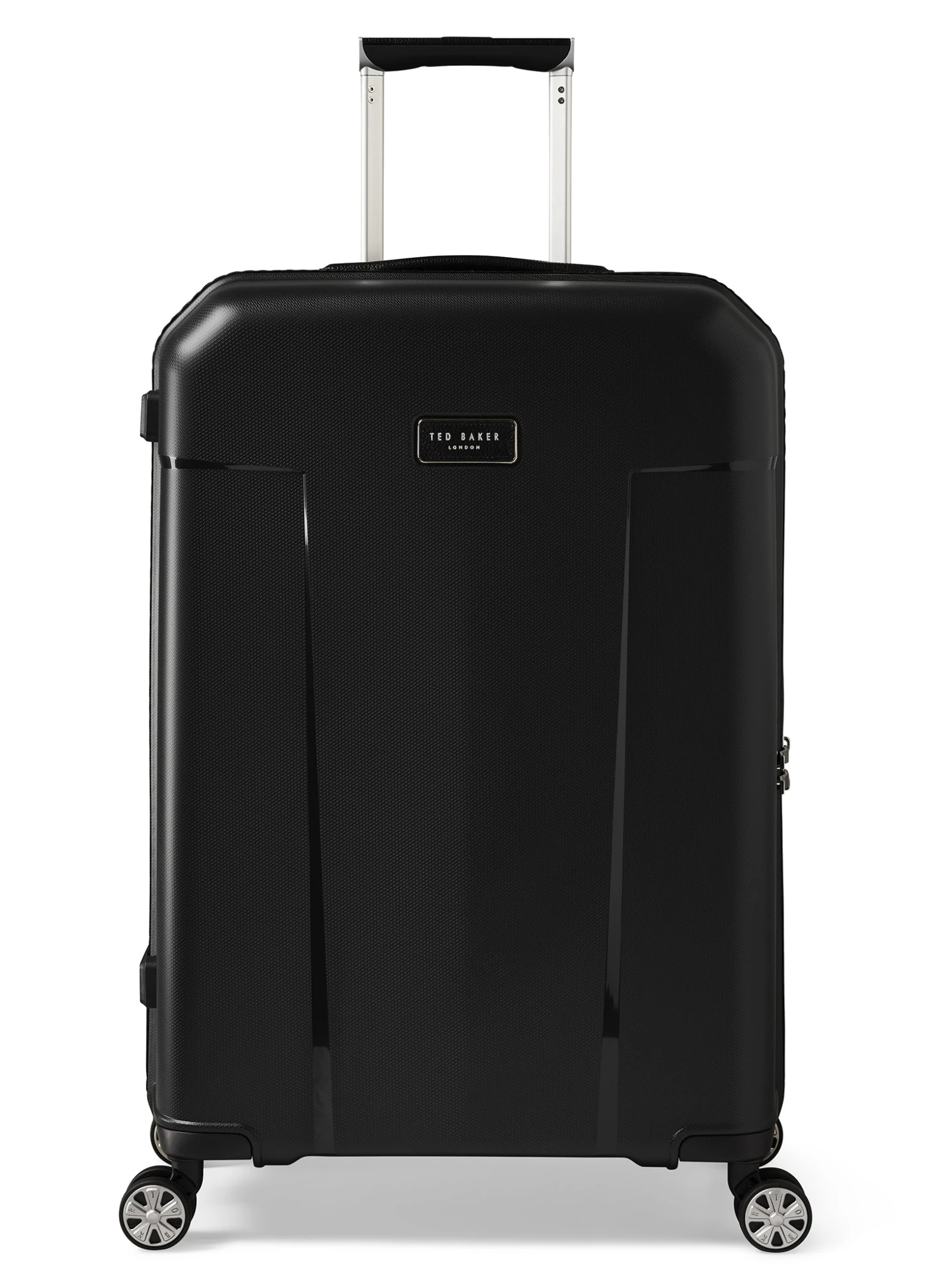 Flying Colours, the latest luggage range from Ted Baker, is a high quality injection moulded polypropylene trolley case. Fashioned with all over embossed logo texture finish and a sleek bespoke designed “T” moulded panel.Â